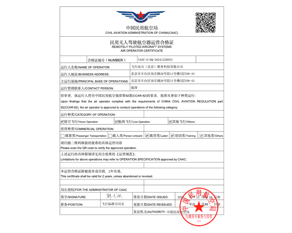 中国民用航空局-民用无人驾驶航空器运营合格证